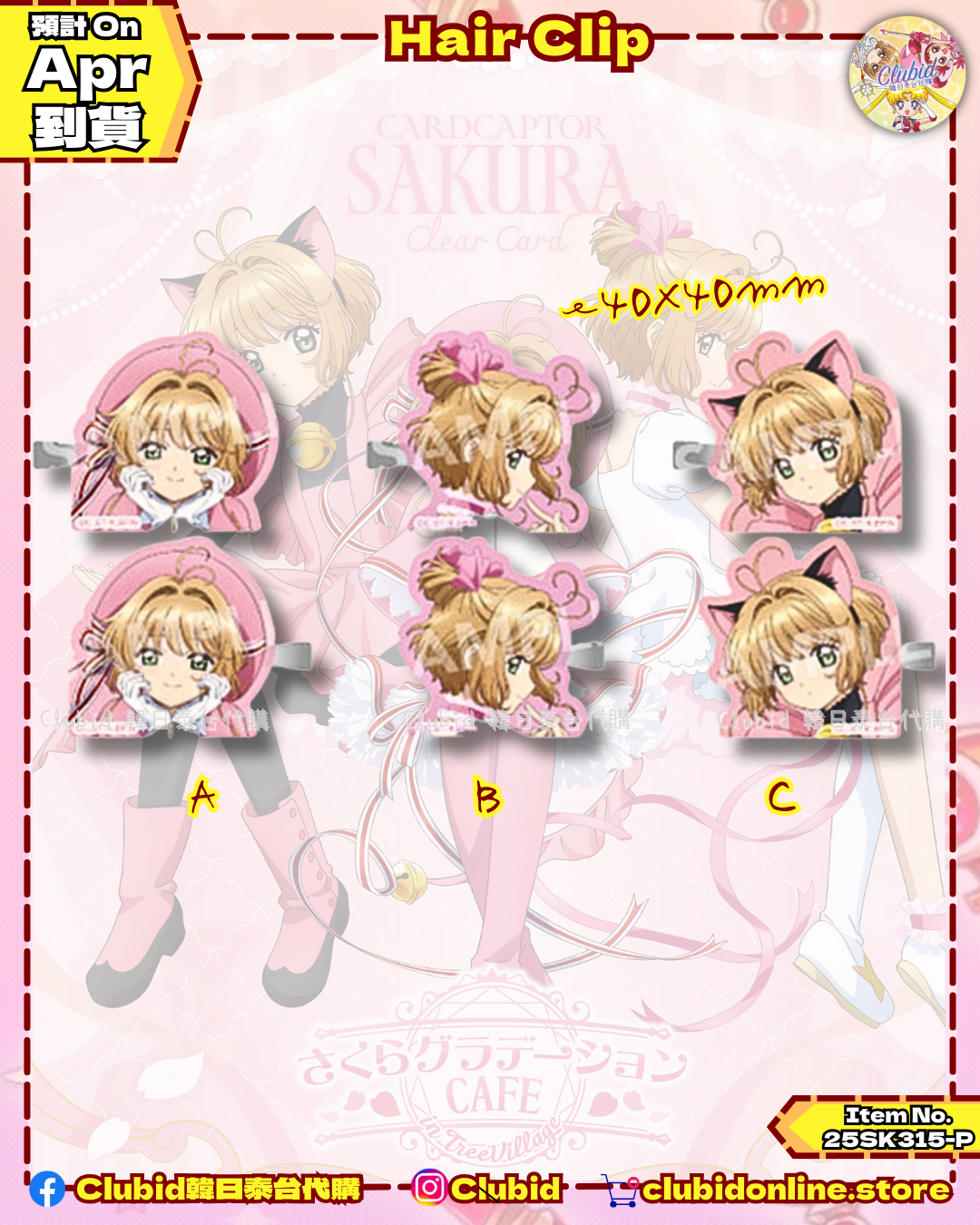 《Pre-Order》Hair Clip|Cardcaptor Sakura CAFE in TreeVillage (25SK315-P)