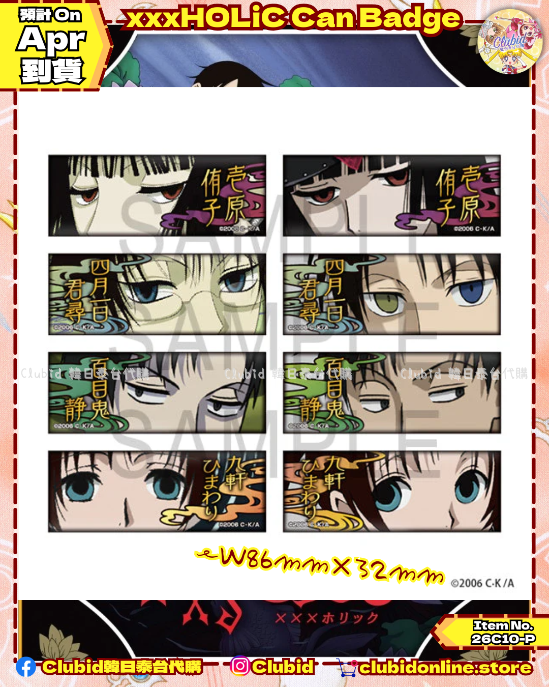《Pre-Order》Can Badge|xxxHOLiC IG 新品 (26C10-P)