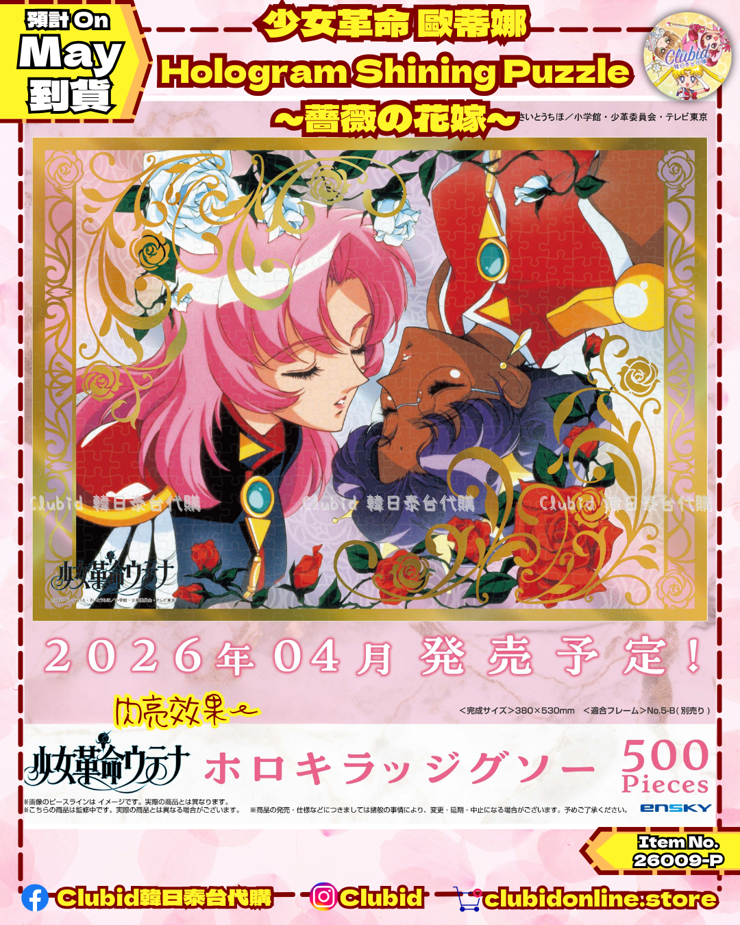 #clubid_少女革命 #clubid_日本代購 SIZE:約38 x 53 cm (完成時) 截單日║3月31日或完售為止 到港日║預計5月⚠️不接急單 取貨║𝙈𝙆 自取點/𝙎𝙁 𝙀𝙭𝙥𝙧𝙚𝙨𝙨 到付/易寄取/𝙊𝙫𝙚𝙧𝙨𝙚𝙖 𝘽𝙮 𝙈𝙖𝙞𝙡 _______________________________________ 🔎網站關鍵詞🔎:【少女革命】 ⭕網站登記會員 ➡️ 取得會員優惠➡️ 擺入購物車並付款➡️完成✅ ⭕會員每次購物儲分當💰️用 ➕️升級會員制度 ➡️ 下次買野更優惠 ⭕讚好+追蹤+開啟全部通知📣就唔會錯過任何優惠啦💕 - ✅ 海外訂單 ᴏᴠᴇʀꜱᴇᴀ ᴏʀᴅᴇʀꜱ ✅ 多種付款方式 ᴍᴜʟᴛɪᴘʟᴇ ᴘᴀʏᴍᴇɴᴛ ᴍᴇᴛʜᴏᴅꜱ - 🛒𝓛𝓲𝓷𝓴 𝓲𝓷 𝓑𝓲𝓸 🌈 #hkigshop #hongkongonlineshop #日本代購 #少女革命代購 #少女革命 #RevolutionaryGirlUtena #歐蒂娜 #發動世界革命力量 #薔薇新娘 #懷舊少女動漫 #PAPERTHEATER #Ensky
