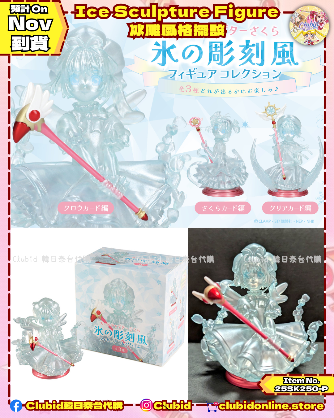 #clubid_小櫻 #clubid_日本代購 10月上旬 POPUP SHOP 博多場新品!冰雕風格模型採用閃耀珠光的透明材質製成,飾有褶邊、絲帶、櫻花花瓣和翅膀……全三種精美造型,無論從哪個角度看都令人驚艷!產品以盲盒形式推出!🎀 其他Popup Shop 產品都仍然接受預訂,如果你有心儀產品仍然可以落單! 🔻🔻🔻POPUP SHOP限定商品已全數上架!🔻🔻🔻 ✅自助落單通道💻🖱:https://www.clubidonline.store/c/百變小櫻Cardcaptor%20Sakura/TaKaRaBaKo%20POPUP%20SHOP 🔥部份產品如果展期內冇貨將自動轉成官方預訂🔥 截單日║完售為止 (10月3日開賣) 到港日║預計下單後3-4星期⚠️不接急單 取貨║𝙈𝙆 自取點/𝙎𝙁 𝙀𝙭𝙥𝙧𝙚𝙨𝙨 到付/易寄取/𝙊𝙫𝙚𝙧𝙨𝙚𝙖 𝘽𝙮 𝙈𝙖𝙞𝙡 _______________________________________ 🔎網站關鍵詞🔎:【百變小櫻】 ⭕網站登記會員 ➡️ 取得會員優惠➡️ 擺入購物車並付款➡️完成✅ ⭕會員每次購物儲分當💰️用 ➕️升級會員制度 ➡️ 下次買野更優惠 ⭕讚好+追蹤+開啟全部通知📣就唔會錯過任何優惠啦💕 - ✅ 海外訂單 ᴏᴠᴇʀꜱᴇᴀ ᴏʀᴅᴇʀꜱ ✅ 多種付款方式 ᴍᴜʟᴛɪᴘʟᴇ ᴘᴀʏᴍᴇɴᴛ ᴍᴇᴛʜᴏᴅꜱ - 🛒𝓛𝓲𝓷𝓴 𝓲𝓷 𝓑𝓲𝓸 🌈 #hkigshop #hongkongonlineshop #日本代購 #小櫻代購 #百變小櫻代購 #小櫻25週年 #庫洛魔法使 #百變小櫻 #百變小櫻magic咭 #百變小櫻clearcard篇 #CardcaptorSakura #ccsakura #魔卡少女櫻 #小櫻 #小狼 #透明卡篇 #古羅卡 #基路仔 #CLAMP作品30周年代購 #CLAMP作品30周年 #카드캡터체리 #카드캡터사쿠라 #カードキャプターさくら #カードキャプターさくら連載25周年記念 #CardcaptorSakura25thAnniversary #カードキャプターさくらTaKaRaBaKo #TaKaRaBaKo #小櫻誕生日 #小櫻冰雕 #氷の彫刻風
